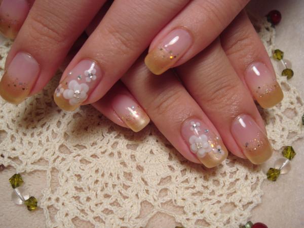パールのベージュに白いお花と、少しキラキラを足して